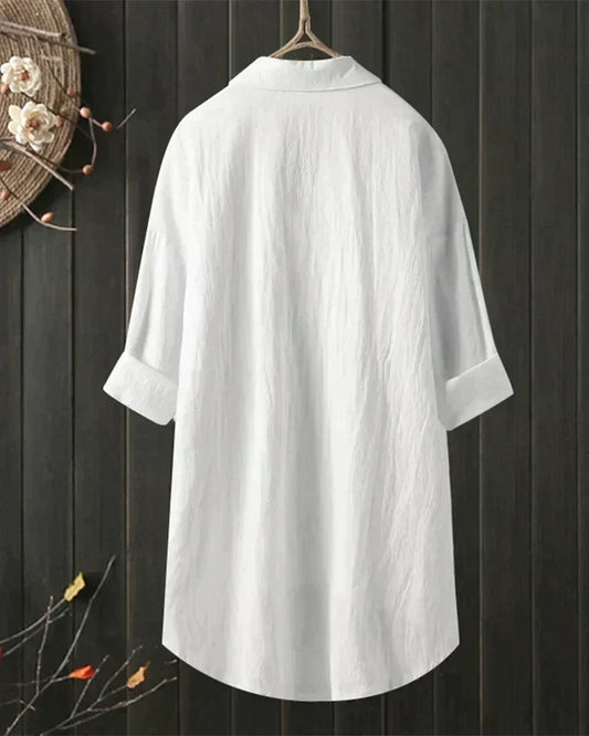 Ivyshape | Linen Shirt With Long Sleeves and Button Placket for Spring