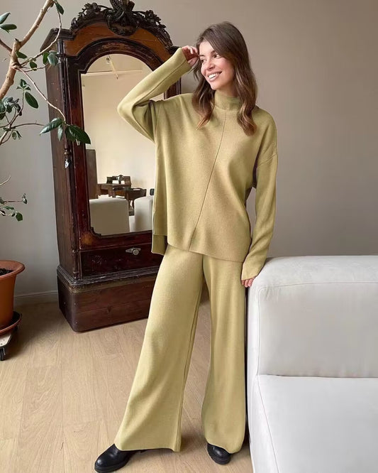 Ladies set consisting of cozy oversized sweater and casual fabric trousers Ivyshape