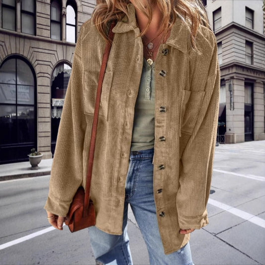 Women's Oversized Cord Jacket with Chest Pockets Ivyshape