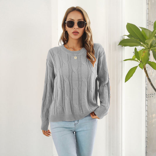 Women's bulky knit sweater with unique cable pattern and casual cut Ivyshape