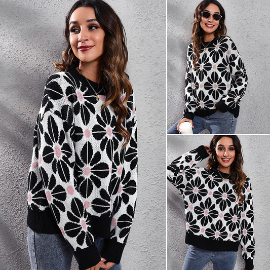 Women's patterned knitted sweater with floral motifs and casual fit Ivyshape
