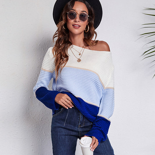 Women's Off-Shoulder Knit Sweater with Modern Color Block Design Ivyshape