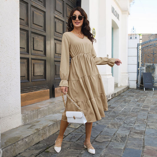 Ladies' midi dress with ruffles and long sleeves Ivyshape