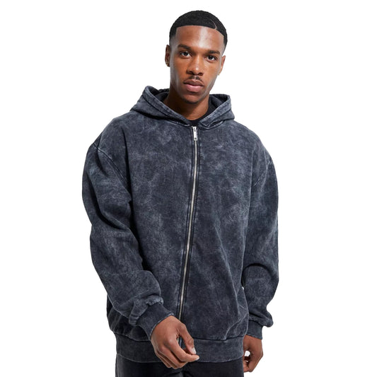 Ivyshape | Stone Washed Zip-Up Hoodie