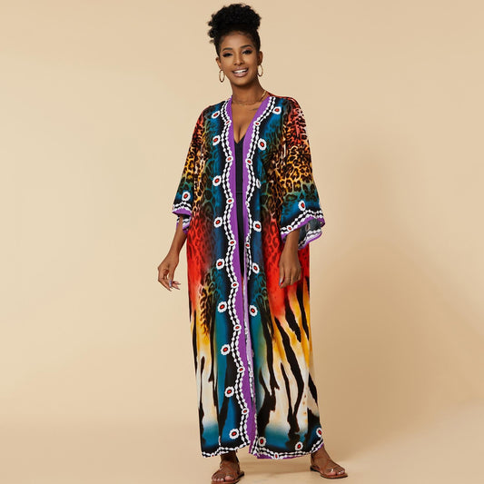 Women's beach kaftan with striking animal motif and flowing silhouette Ivyshape