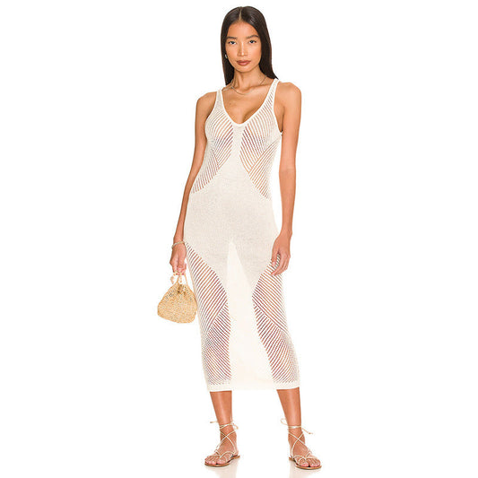 Women’s Mesh Beach Dress with Deep V-Neck and Decorative Slit Details Ivyshape