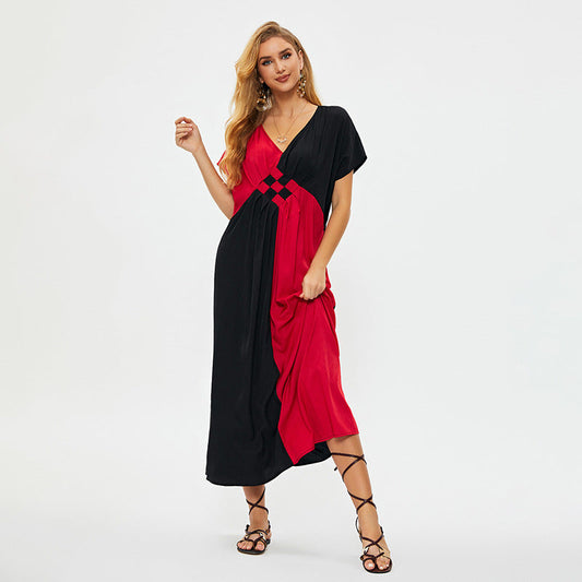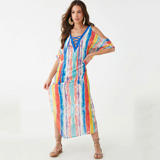 Women's Net Beach Dress with Deep V-Neck and Casual Front Band Ivyshape