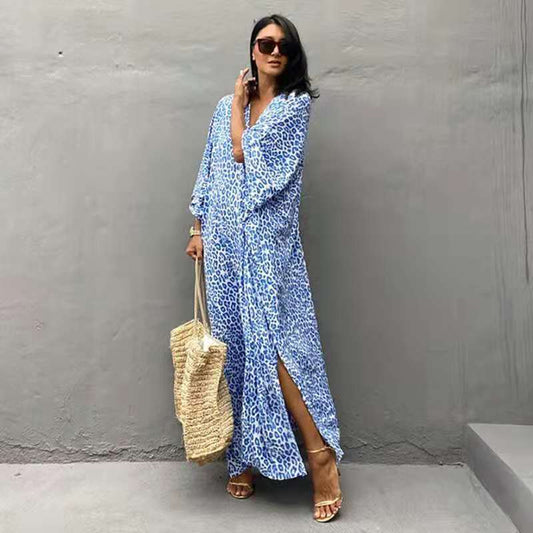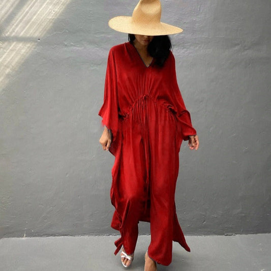 Women's maxi beach dress with deep V-neck and elegant side slits Ivyshape