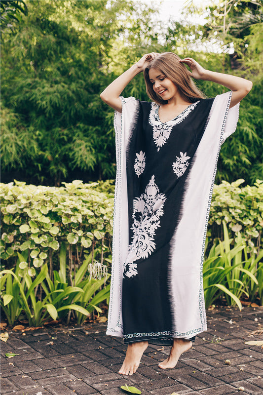 Women Elegant Kaftan Dress with Artistic Flower Motif Ivyshape