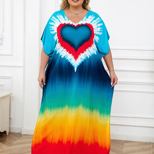 Women's maxi dress with creative gradient color and heart-shaped design Ivyshape