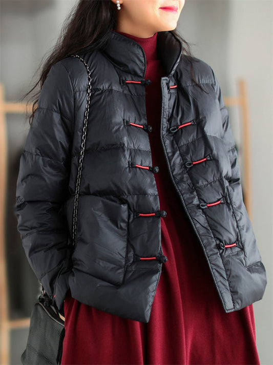 Retro Knot Button Ultra Light Bubble Padded Coat for Women