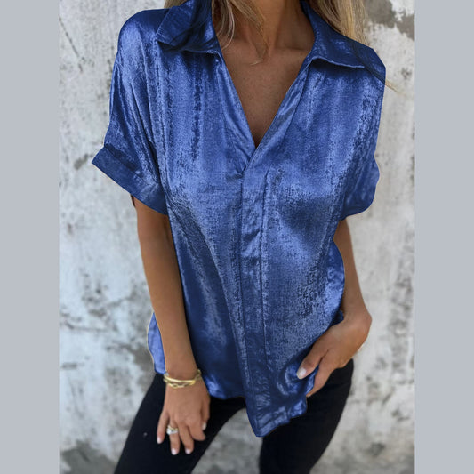 Women Elegant Short Sleeve Blouse made of Shiny Material Ivyshape