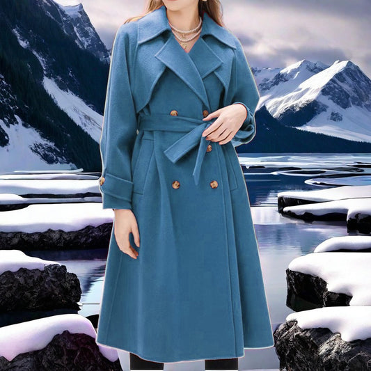 Women Elegant Trench Coat with Double Button Placket and High Collar Ivyshape