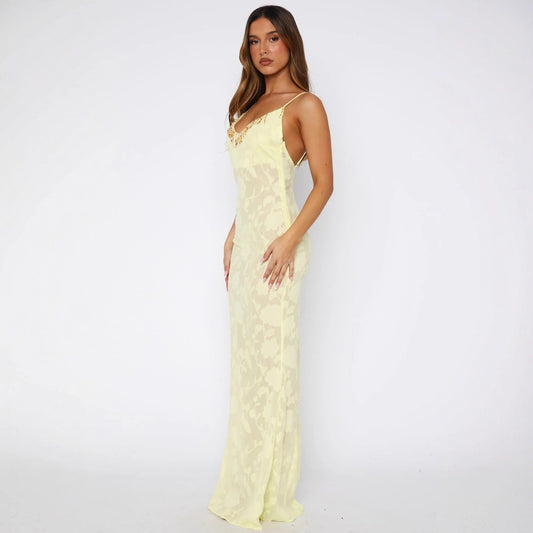 Women Elegant Transparent Wrap Dress with Floral Pattern and Sparkling Neckline Ivyshape