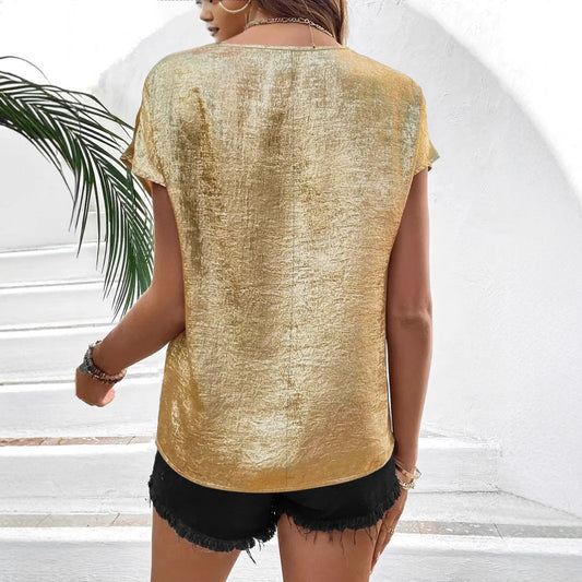 Women Elegant V-Neck Shimmer Top Ivyshape