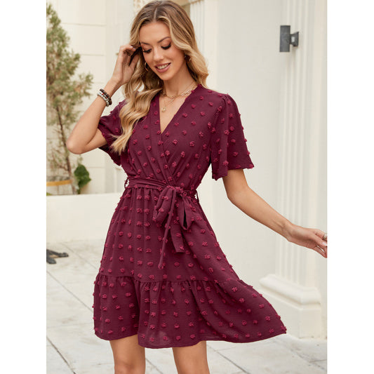 Women Elegant Wrap Dress with Textured Fabric and Waist Belt Ivyshape