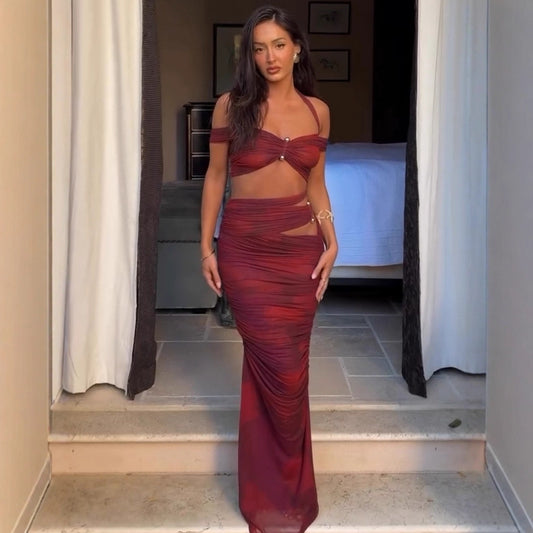 Women Elegant Wrap Maxi Dress with Asymmetrical Cut-Out Details Ivyshape