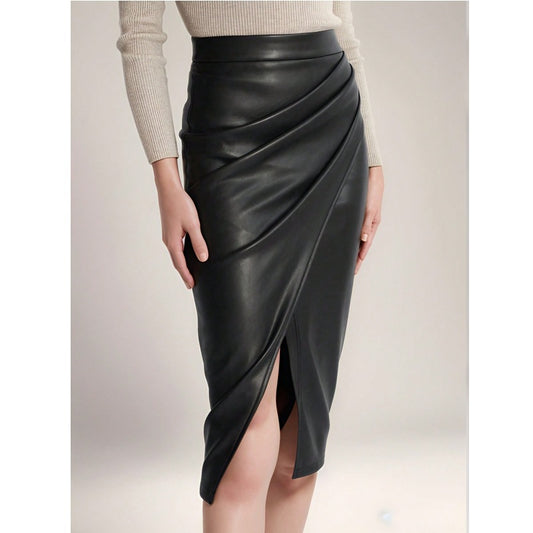 Women Elegant Wrap Skirt made of high-quality Faux Leather with Slit Ivyshape