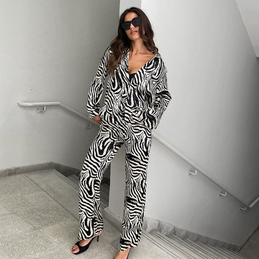 Women Elegant Zebra Pattern Plus Size Pajama Set Ivyshape