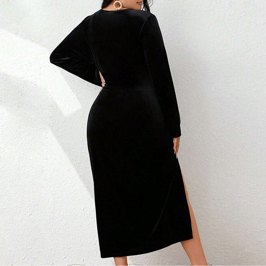 Women Elegant Wrap Maxi Dress with Asymmetric Neckline and Luxurious Cut Ivyshape