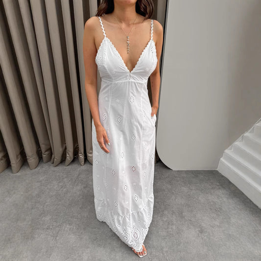 Women Embroidered Chiffon Maxi Dress Ivyshape