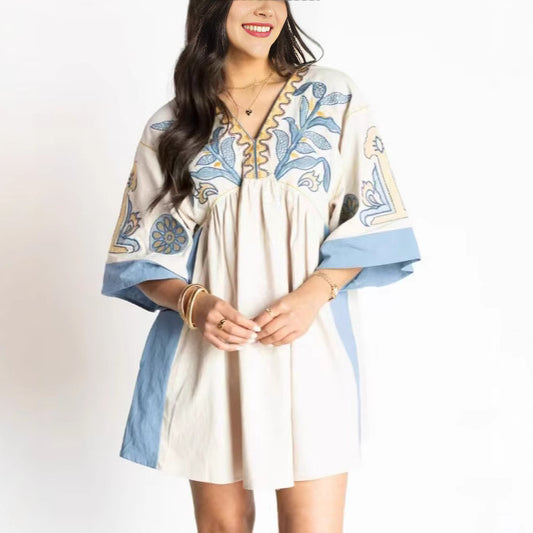 Women Embroidered Bohemian Mini Dress Ivyshape