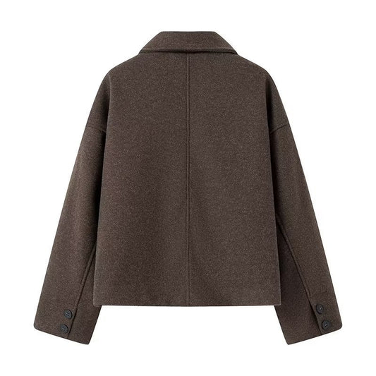 Women Fashionable Cord Jacket with Wide Collar and Patch Pockets Ivyshape