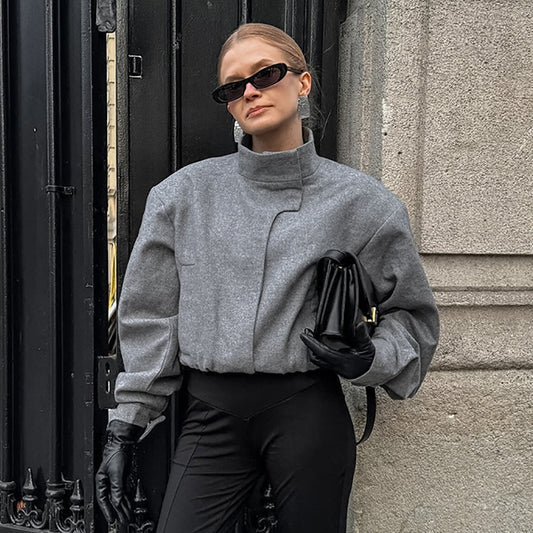Women Fashionable Oversized Jacket with High Collar and Innovative Design Ivyshape