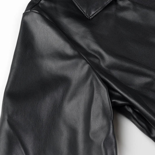 Women Faux Leather Biker Jacket in Casual Cropped Design Ivyshape