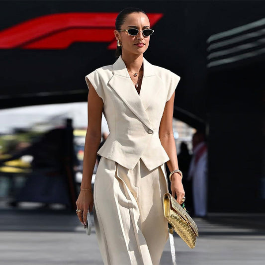 Women Fashionable Pantsuit with Tailored Blazer and Wide Leg Cut Ivyshape