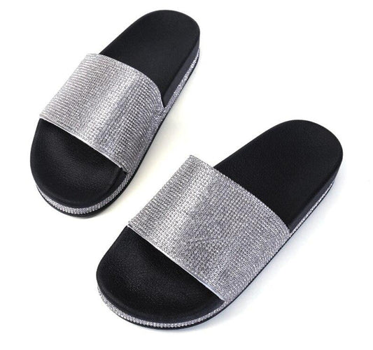 IvyShape | Crystal Diamond Slides with Trim Sandals