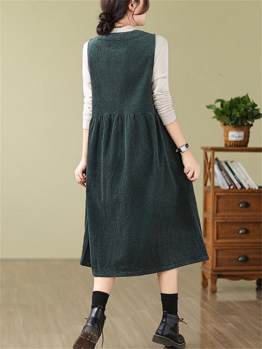 Crew Neck Button Up Sleeveless Mid-Length Dress