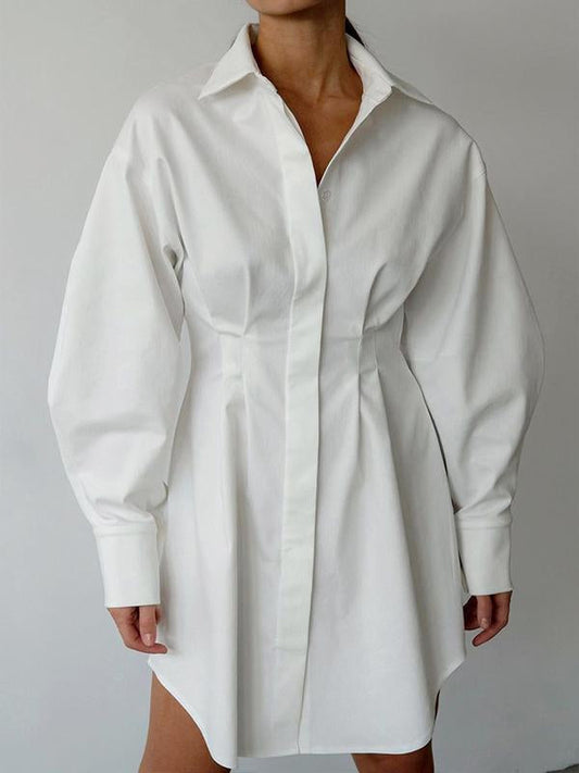 French shirt-skirt waist slimming long-sleeved slim-fit dress