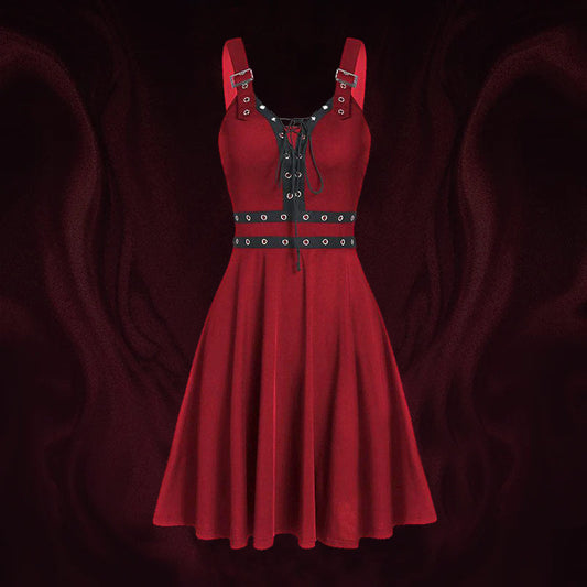 Punk Style Sexy Patchwork Strappy Halter Dress