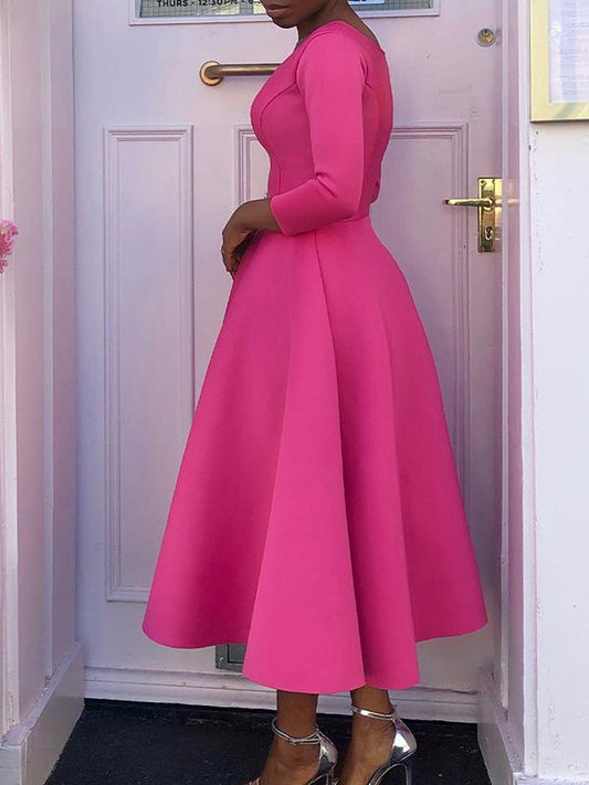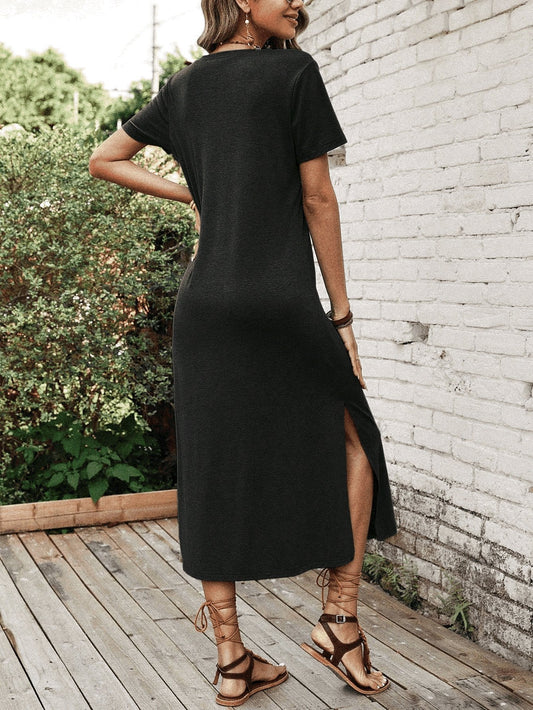 V-neck slim sexy tight-fitting mid-length solid color knit dress