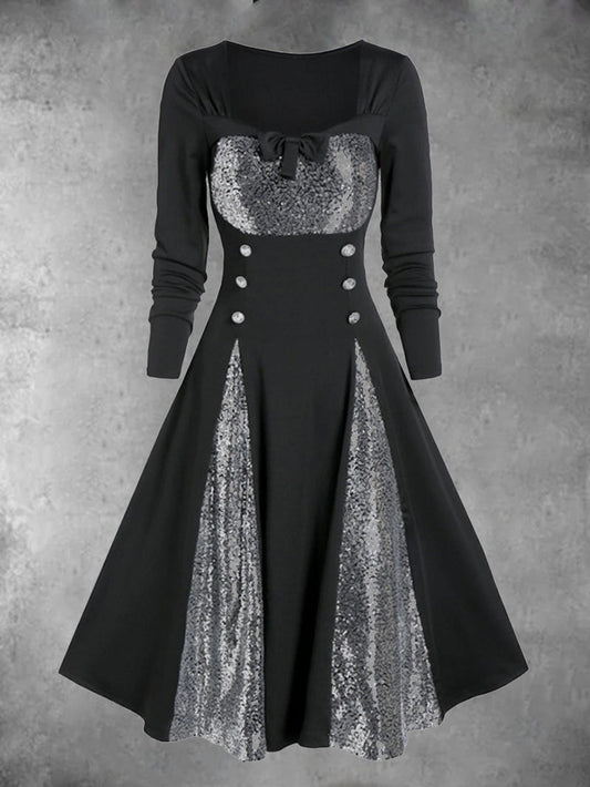 Black Dress Sequin Dress Party Dress Mini Dress Long Sleeve Sequins