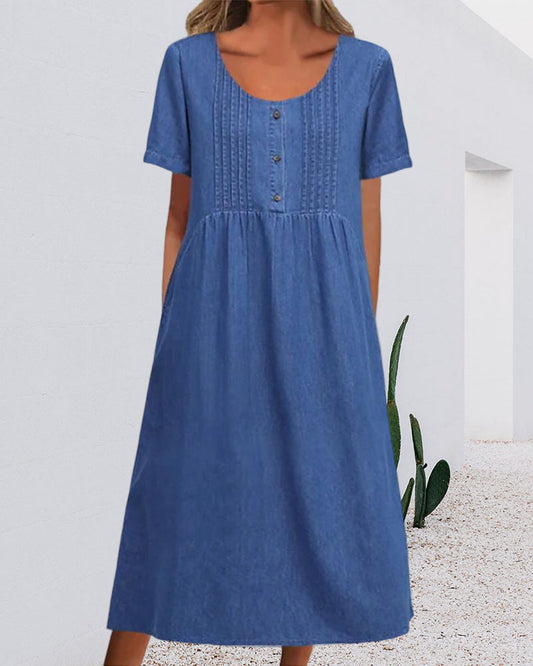 Summer Denim Midi Dress with Short Sleeves | Ideal for Summer