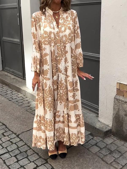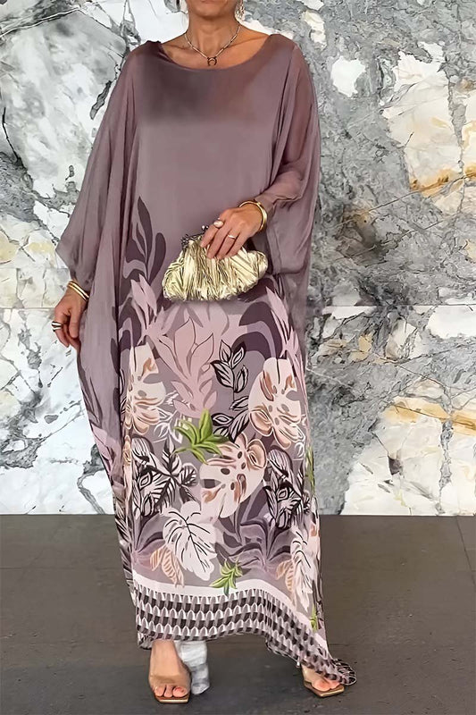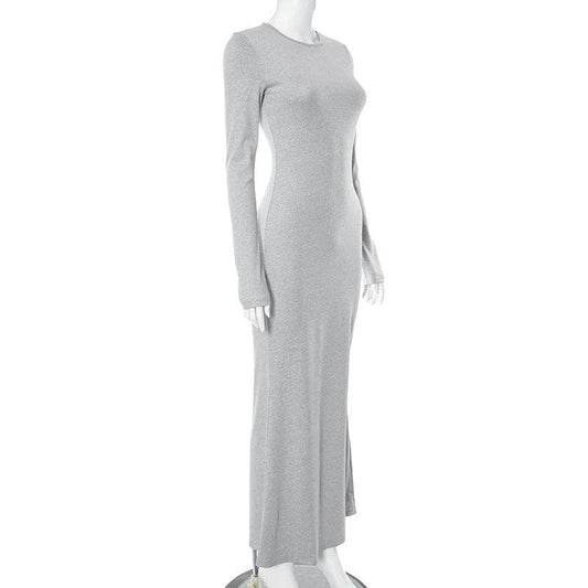 Patchwork mesh contrast long sleeve high neck maxi dress