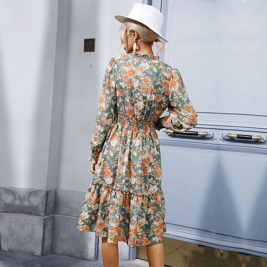 Women's blouse dress with floral patterns and ruffle details Ivyshape