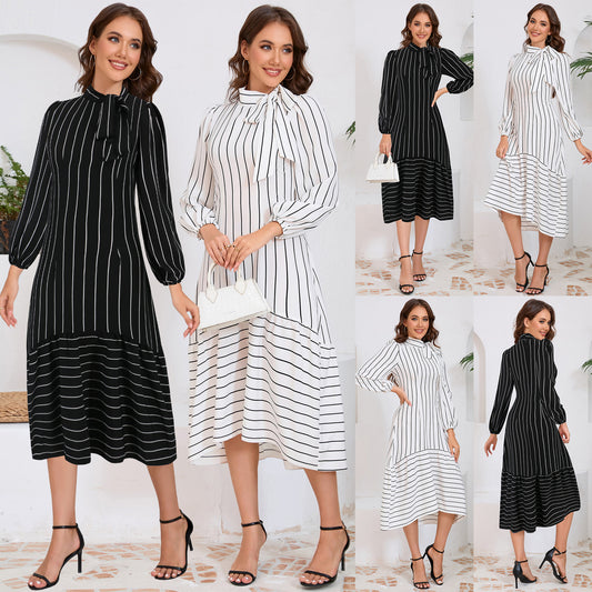 Women’s midi dress with elegant tie and stripe pattern Ivyshape