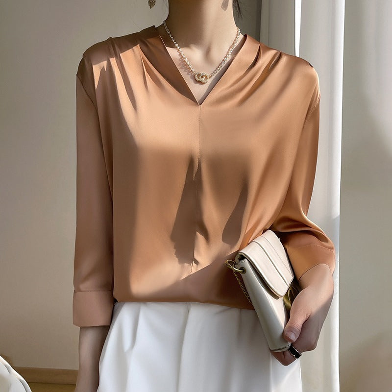 Discover the exquisite women's silk blouse with an elegant V-neck and button details from Ivyshape. This stylish blouse combines comfort and class, ideal for any occasion.