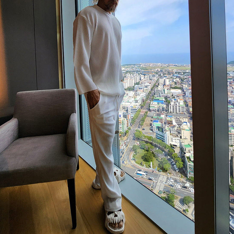 Men's Casual Ribbed Knit Set with 3/4 Sleeves and Comfortable Pants Ivyshape
