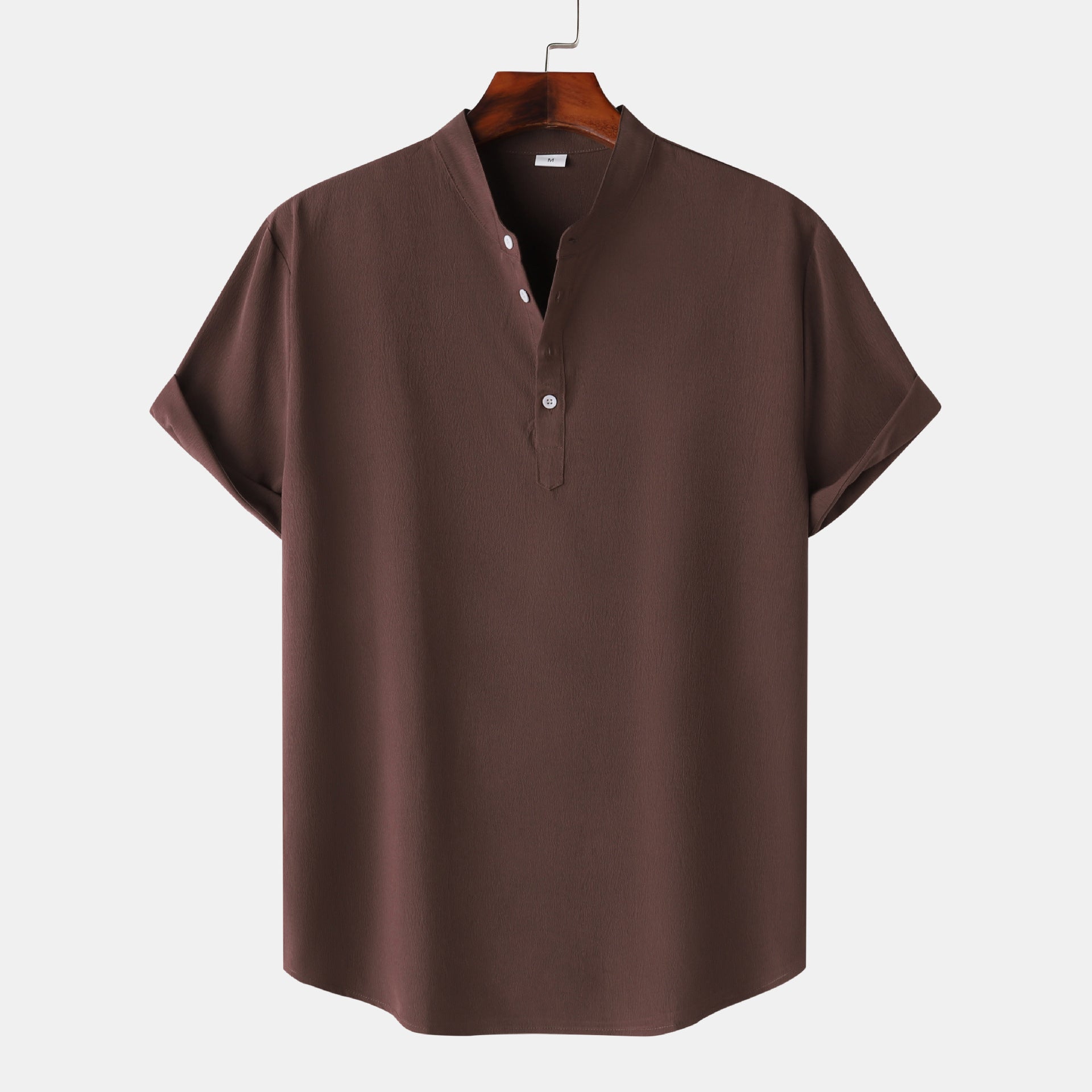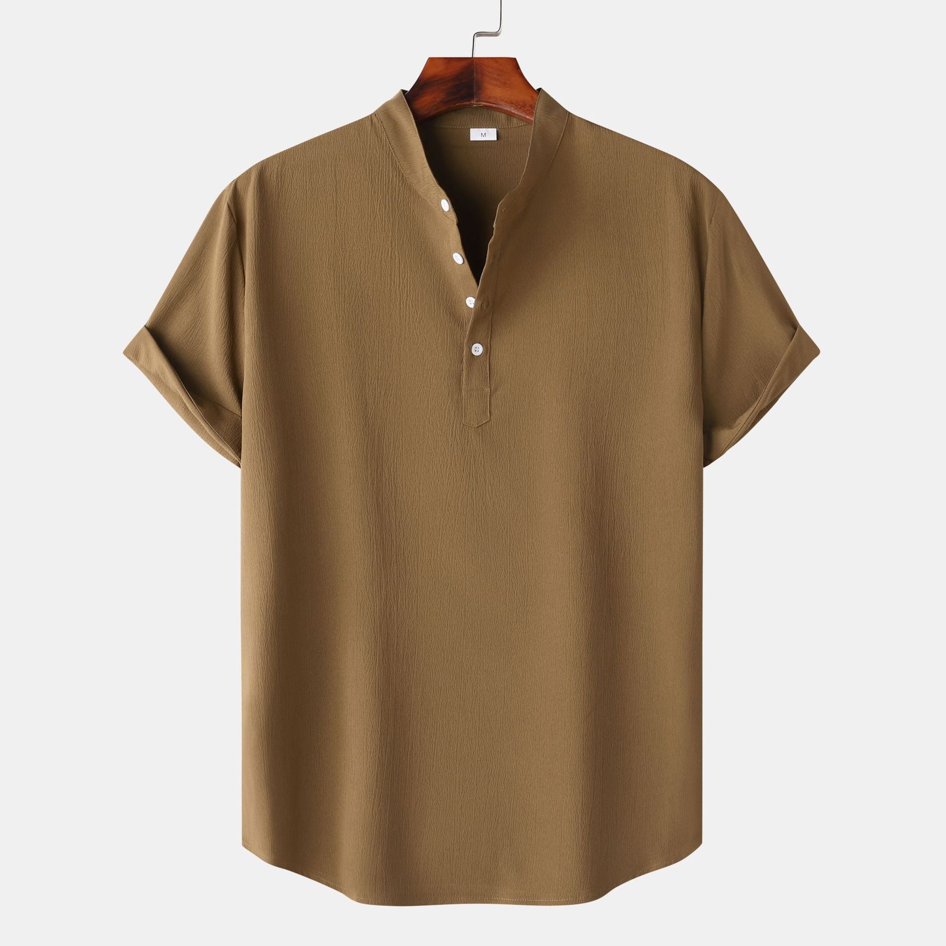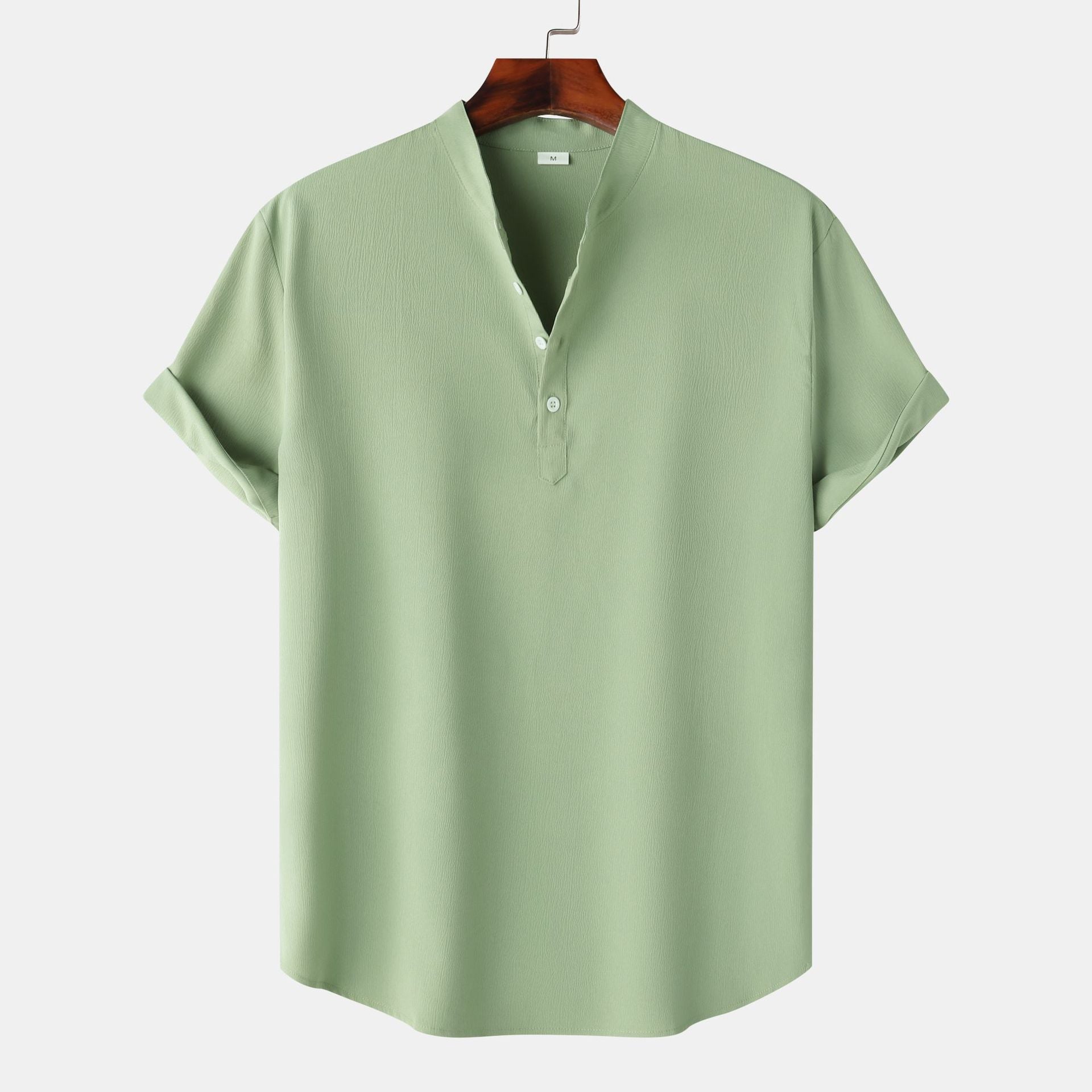 Discover our stylish men's short-sleeve shirt, which impresses with its modern Henley design and functional buttons. This shirt combines comfort and fashionable flair, perfect for casual occasions and relaxed days.