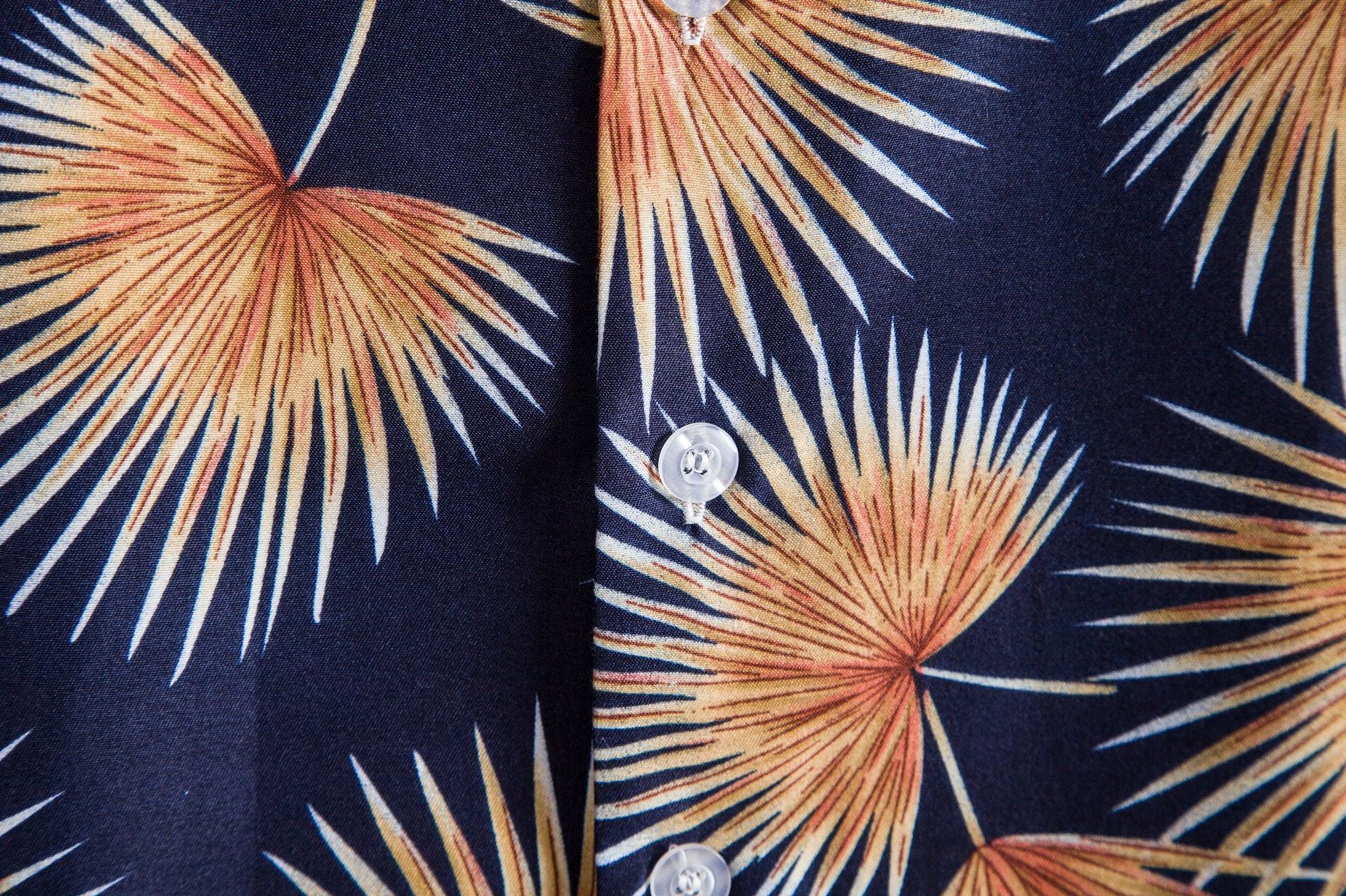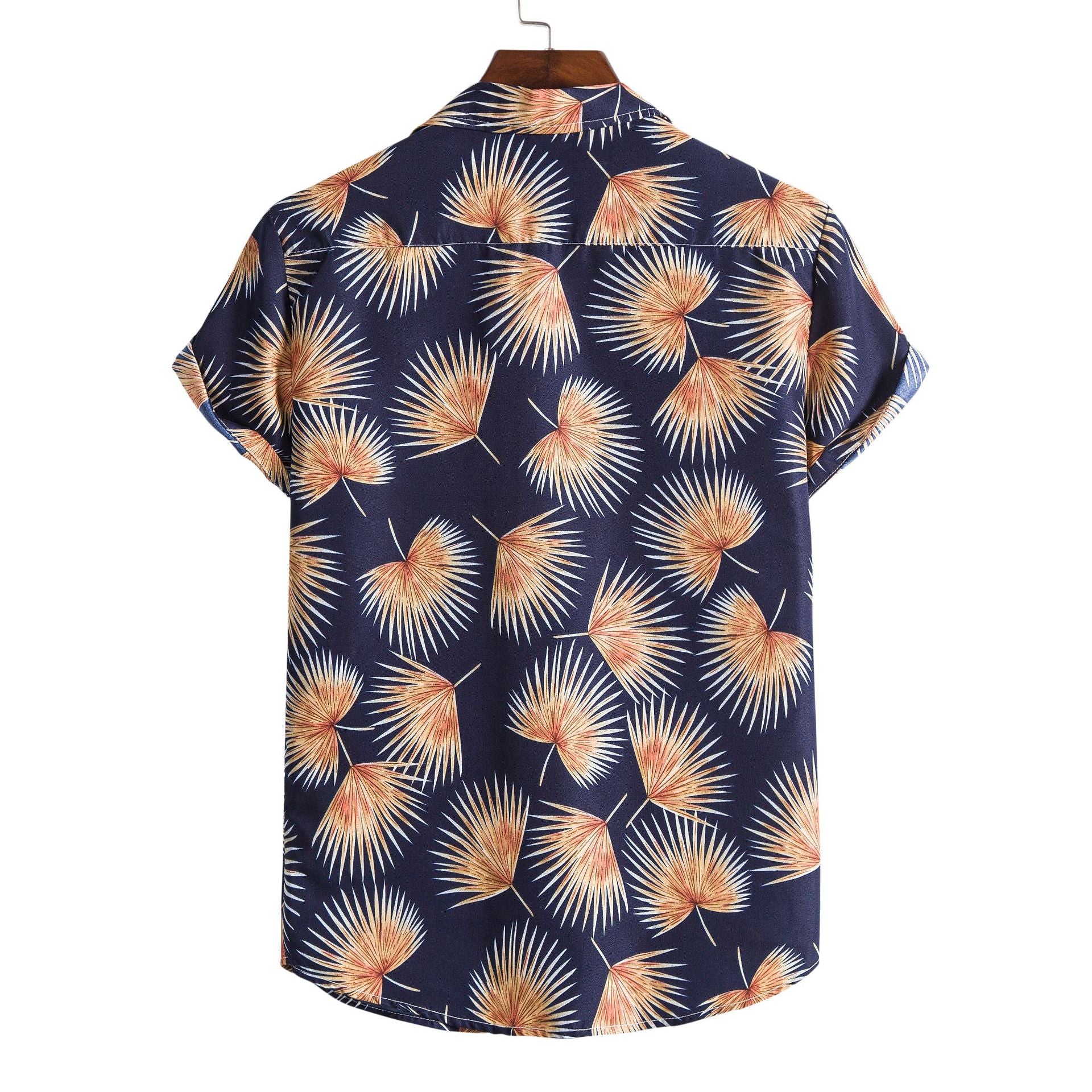 Men's short-sleeve shirt with tropical palm motif and casual fit Ivyshape