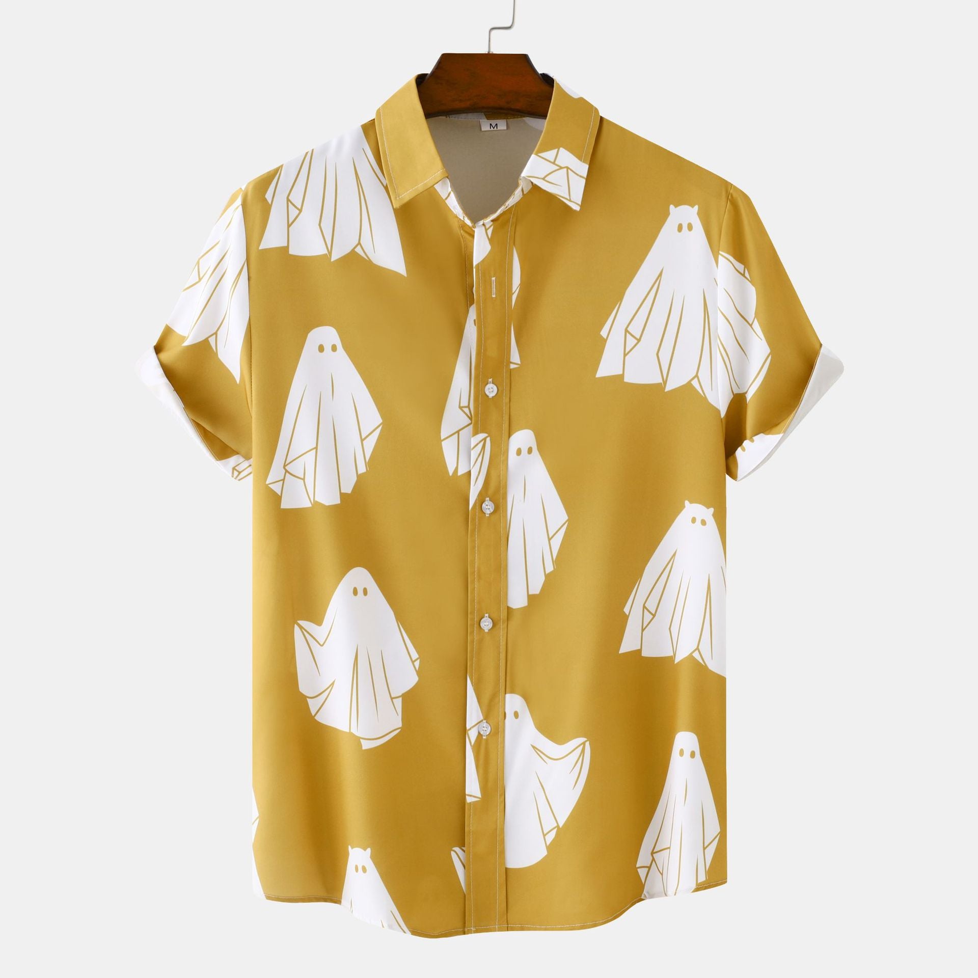 Men's Short Sleeve Shirt with Unique Ghost Print Ivyshape