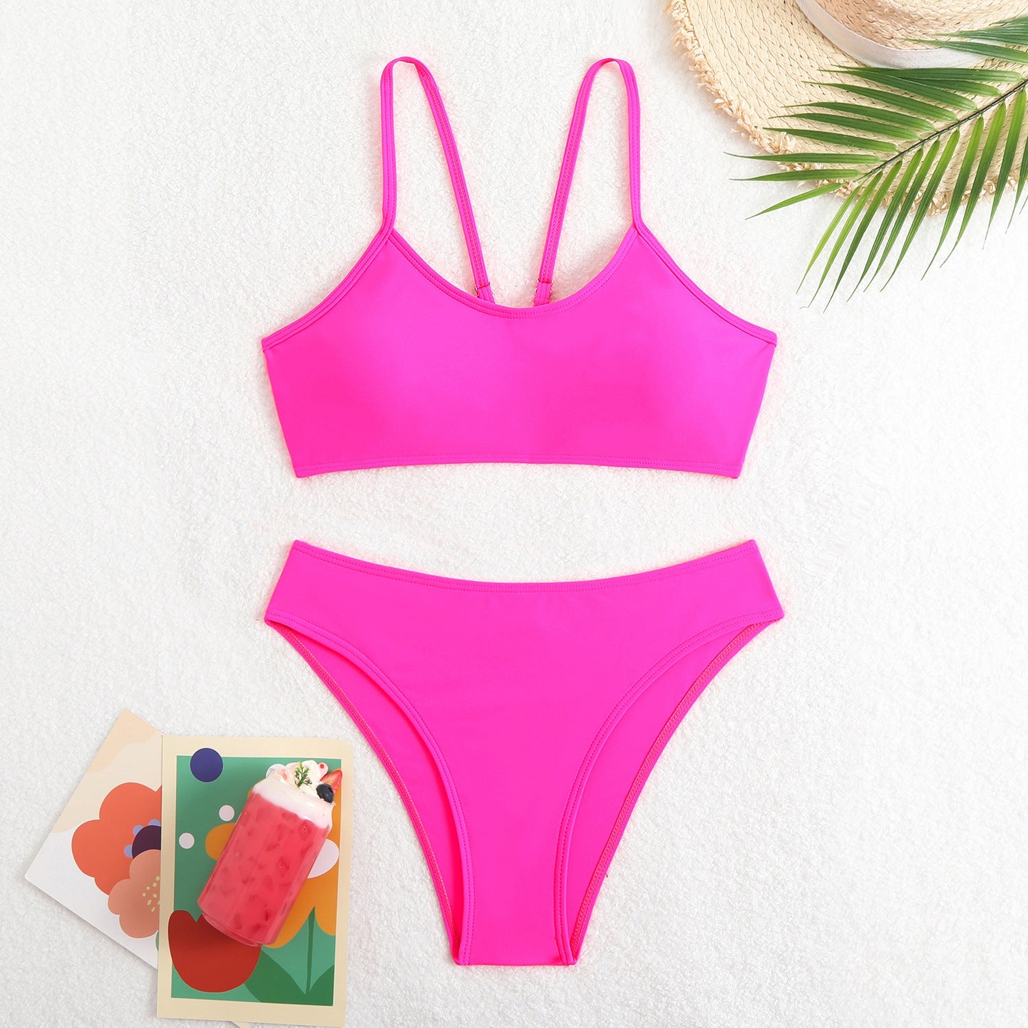- Cut: The top features a modern, minimalist cut with adjustable straps, while the bottom offers a subtle, flattering look.