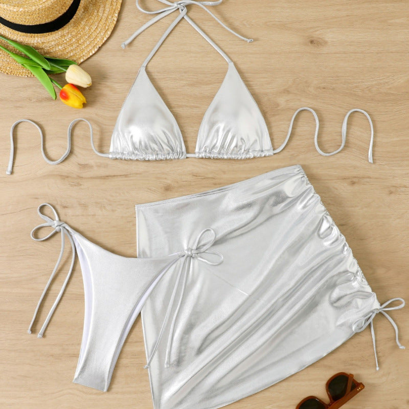 Women's bikini set with shimmering triangle top and fashionable wrap skirt Ivyshape