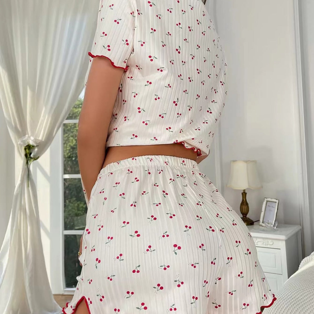 Women's Charming Short Sleeve Pajama Set with Cherry Pattern Ivyshape