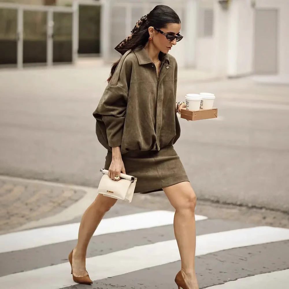 Discover the perfect pencil skirt that combines style and comfort. This elegant skirt made from high-quality faux suede impresses with its seamless finish and the luxuriously shimmering material that adds a touch of luxury to any outfit.