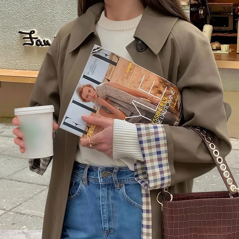 Women Elegant Trench Coat with checked interior and wide cut Ivyshape